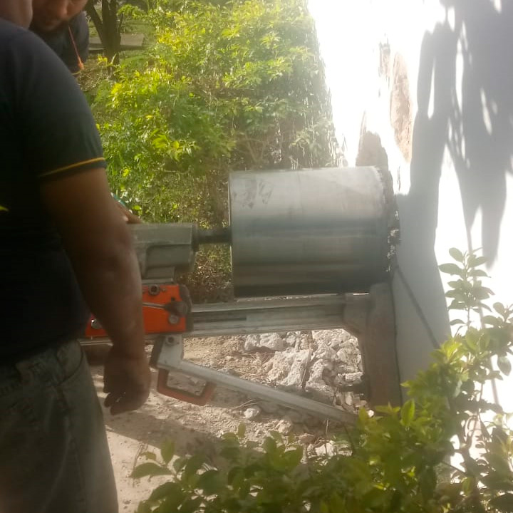 Execução de perfurações com brocas especiais de segmento diamantado ou de Videa, em estruturas de concreto armado ou alvenaria.